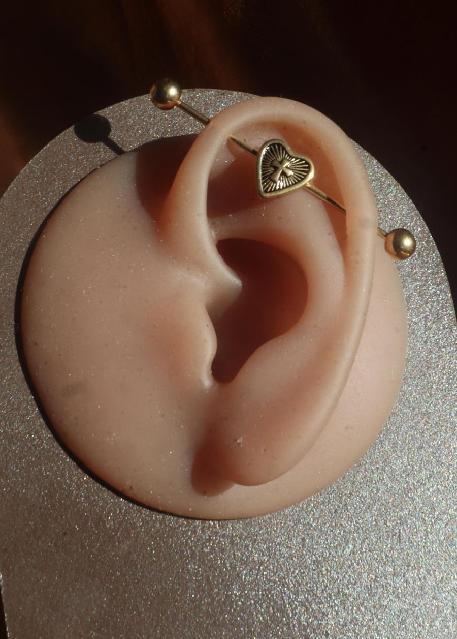 Absolutely in love with this piercing it goes with everything. The slight pop of color from the gem is so beautiful. I highly recommend getting this if you like exaggerated yet simple, light weight and good priced jewelry. LOVE IT ! 🥰