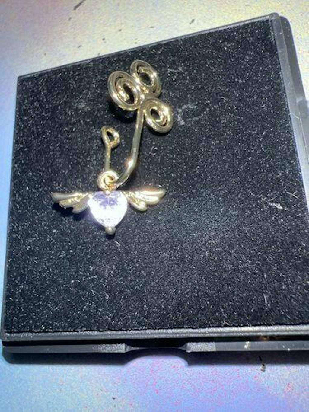 - Design: Galore Dangle Heart Wing Gold Clip-On Nose Cuff