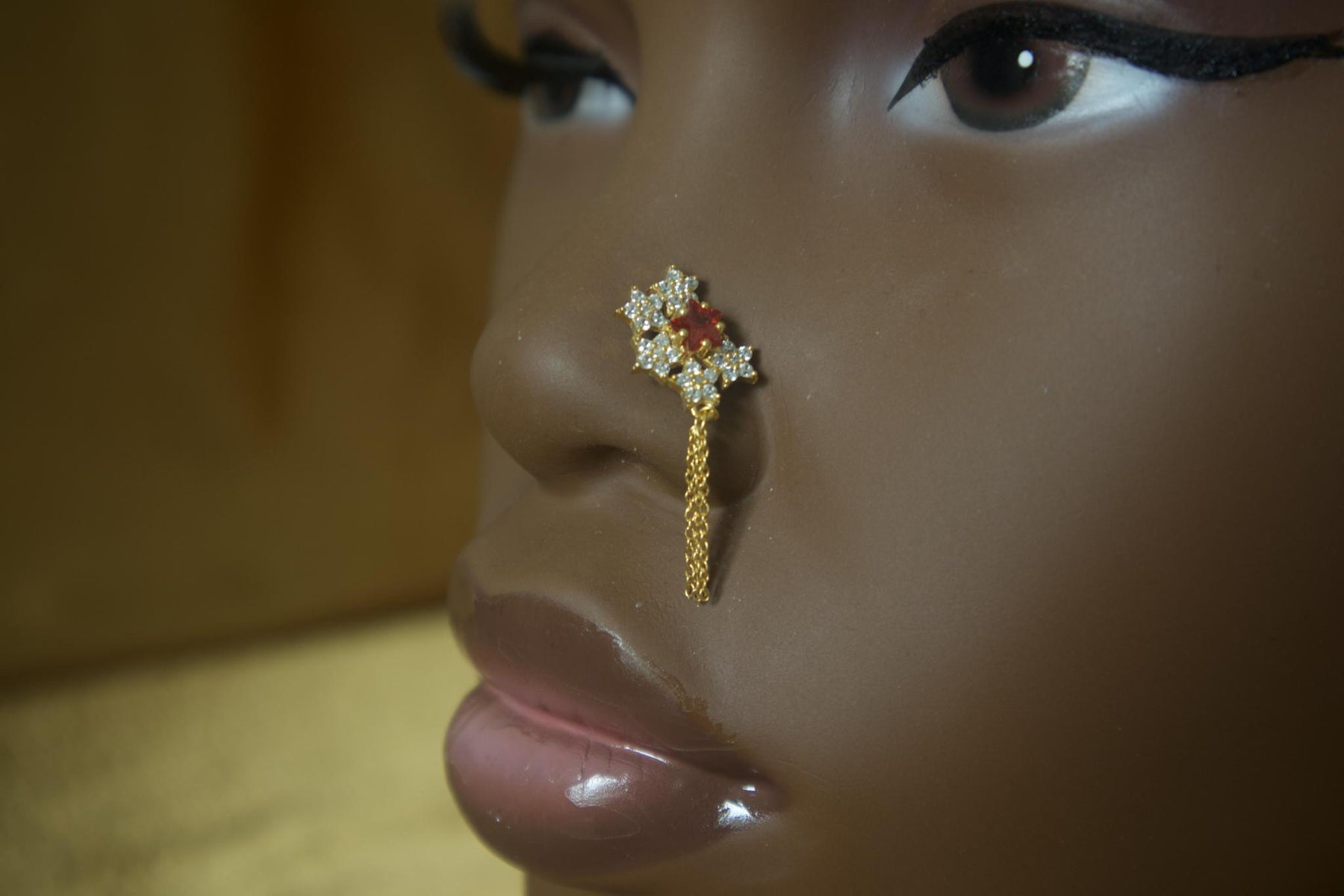The beautiful six-star gem and dangling chain will give your nose a trendy style to it. The beautiful design and gold color will grab massive attention. You can wear it alone for a classic style, and layer it with other jewelry for an elegant appearance.