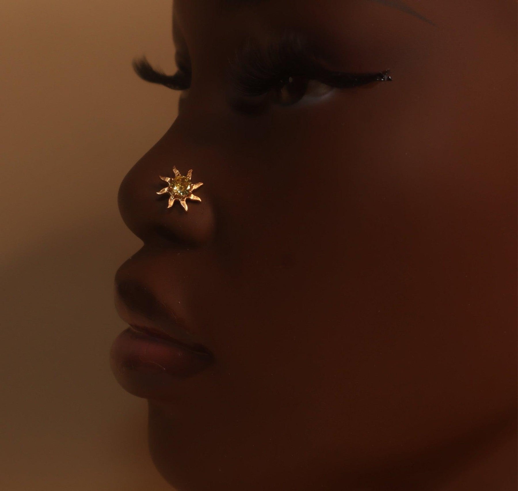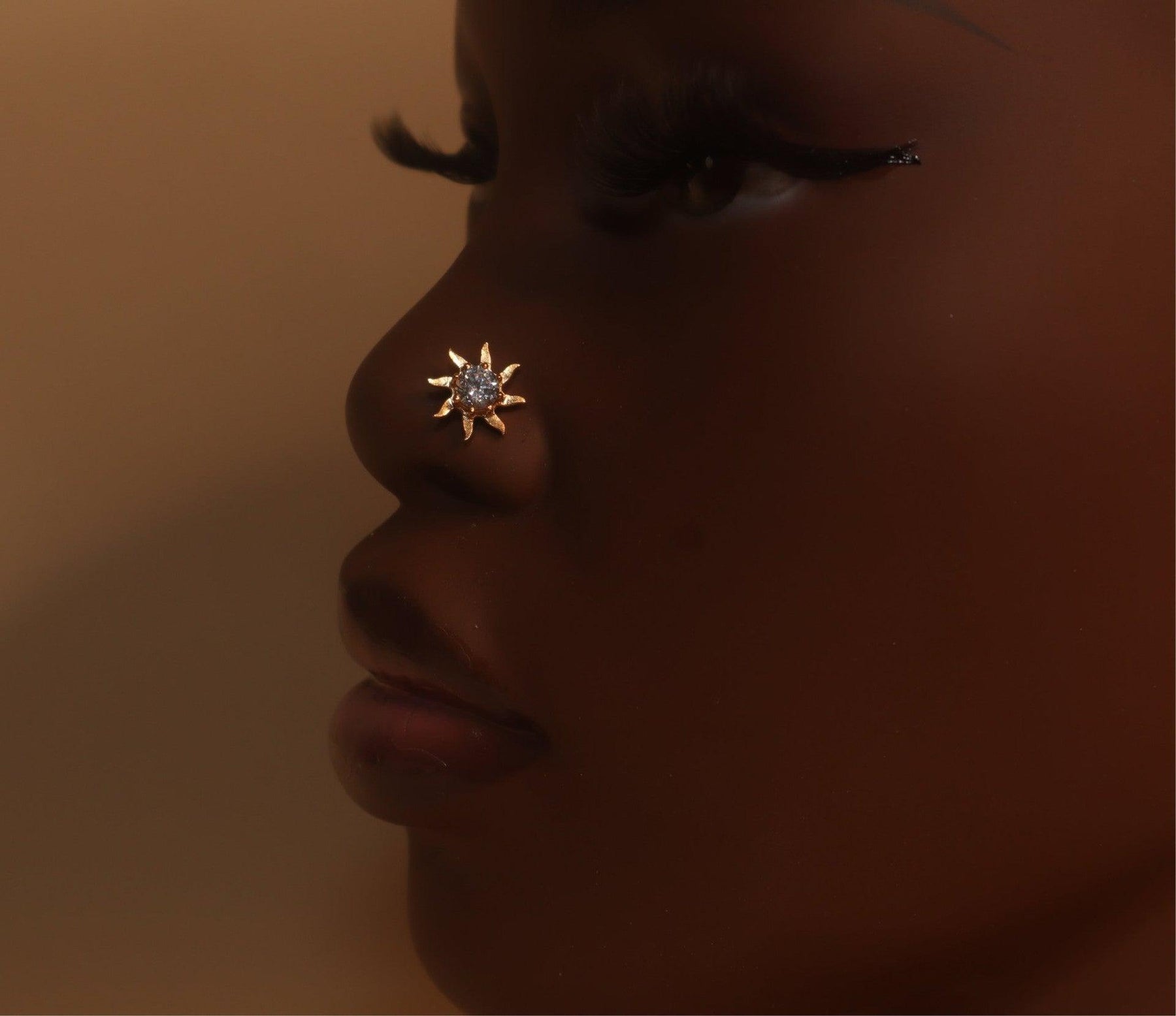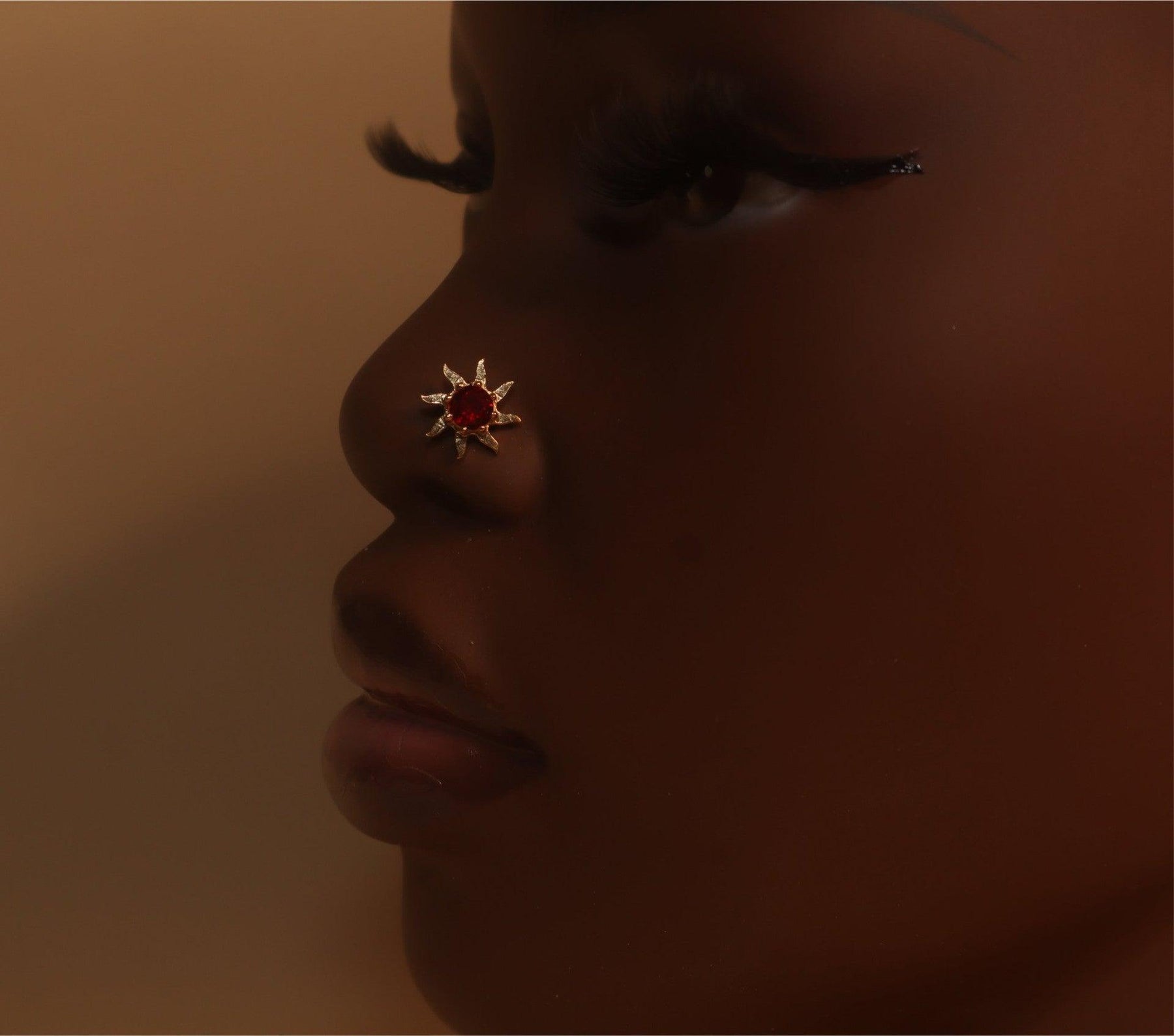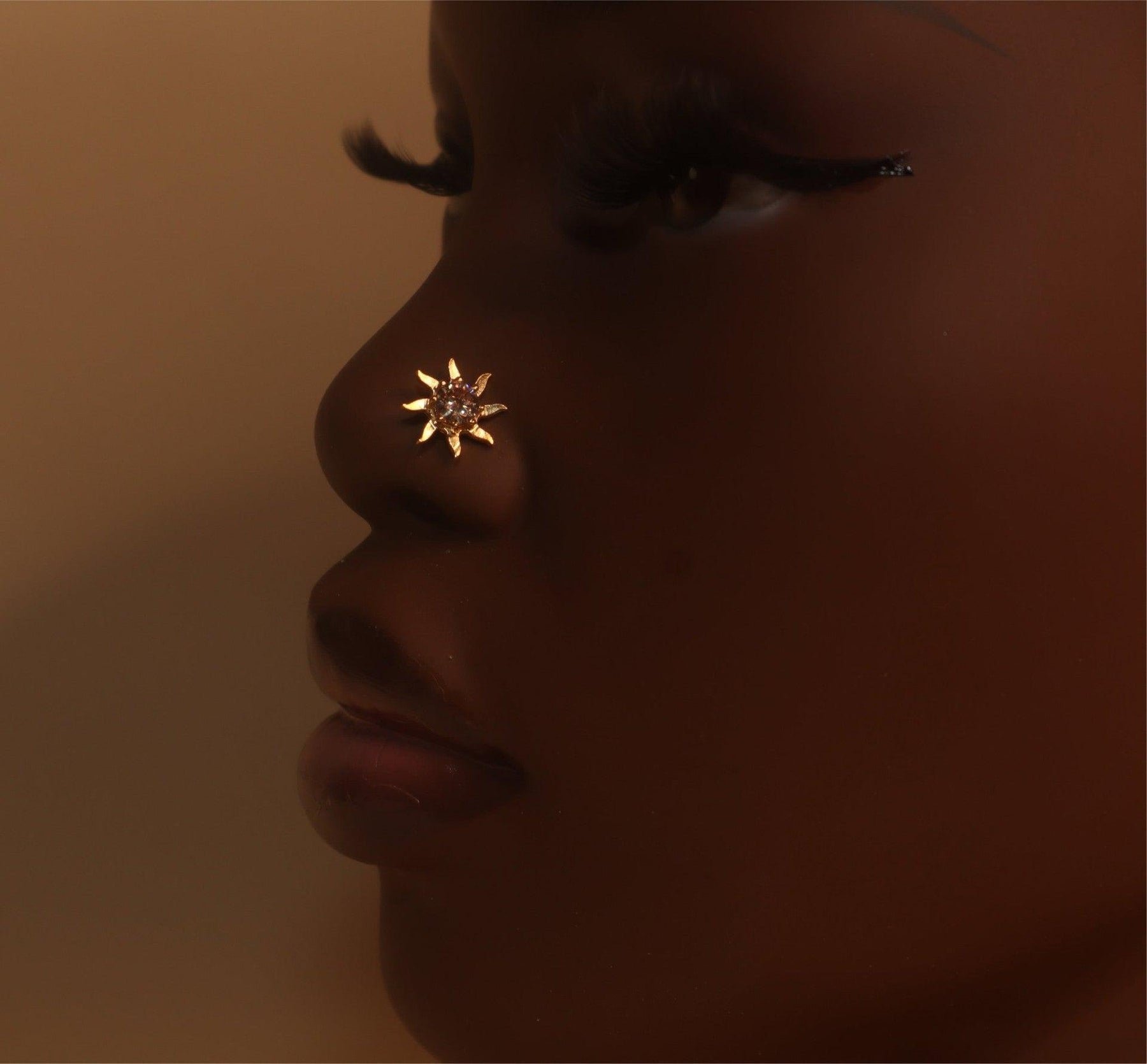 - This handmade flower gem nose stud is made from high-quality sterling silver material