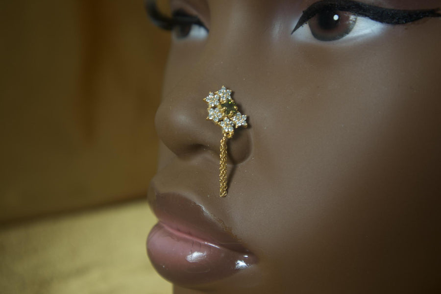 Dangle Chain Six Star Gem Nose Stud Piercing Jewelry