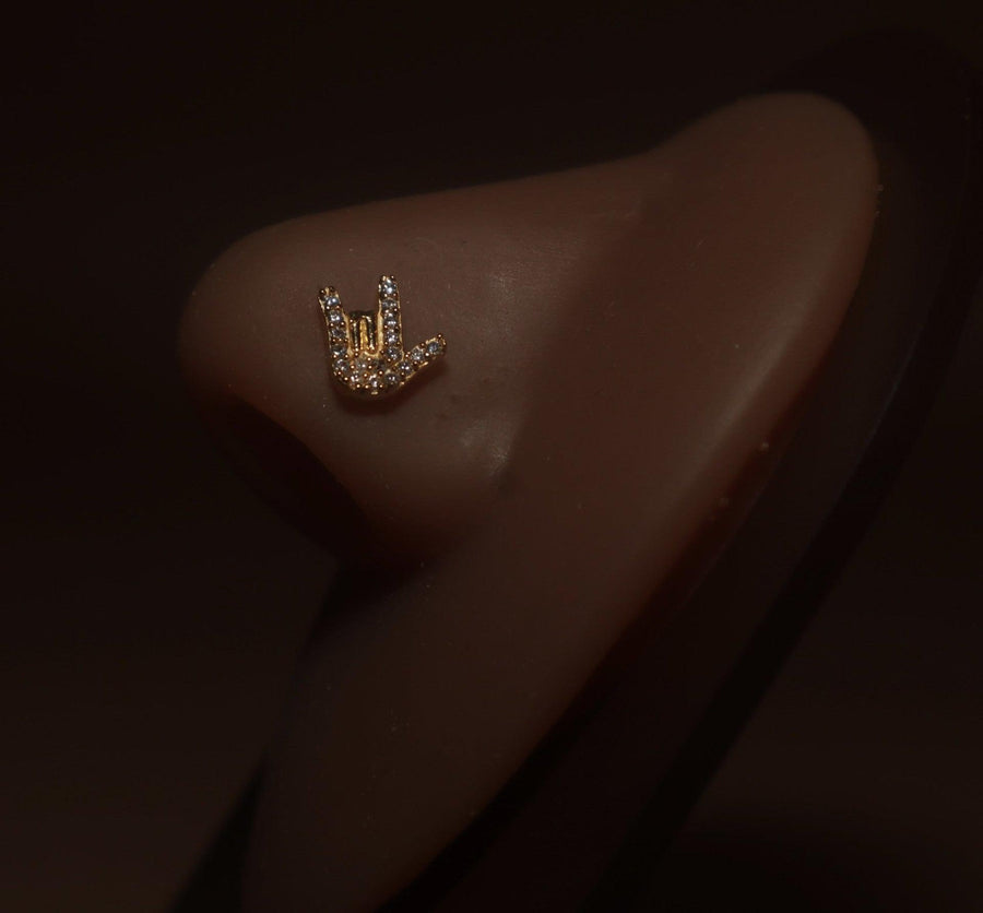 Rock on Hand Emoji Nose Stud Ring Piercing Jewelry