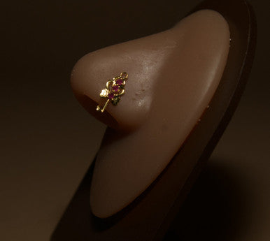 Three Cubic Zircon Gems Heart Key Nose Stud Ring