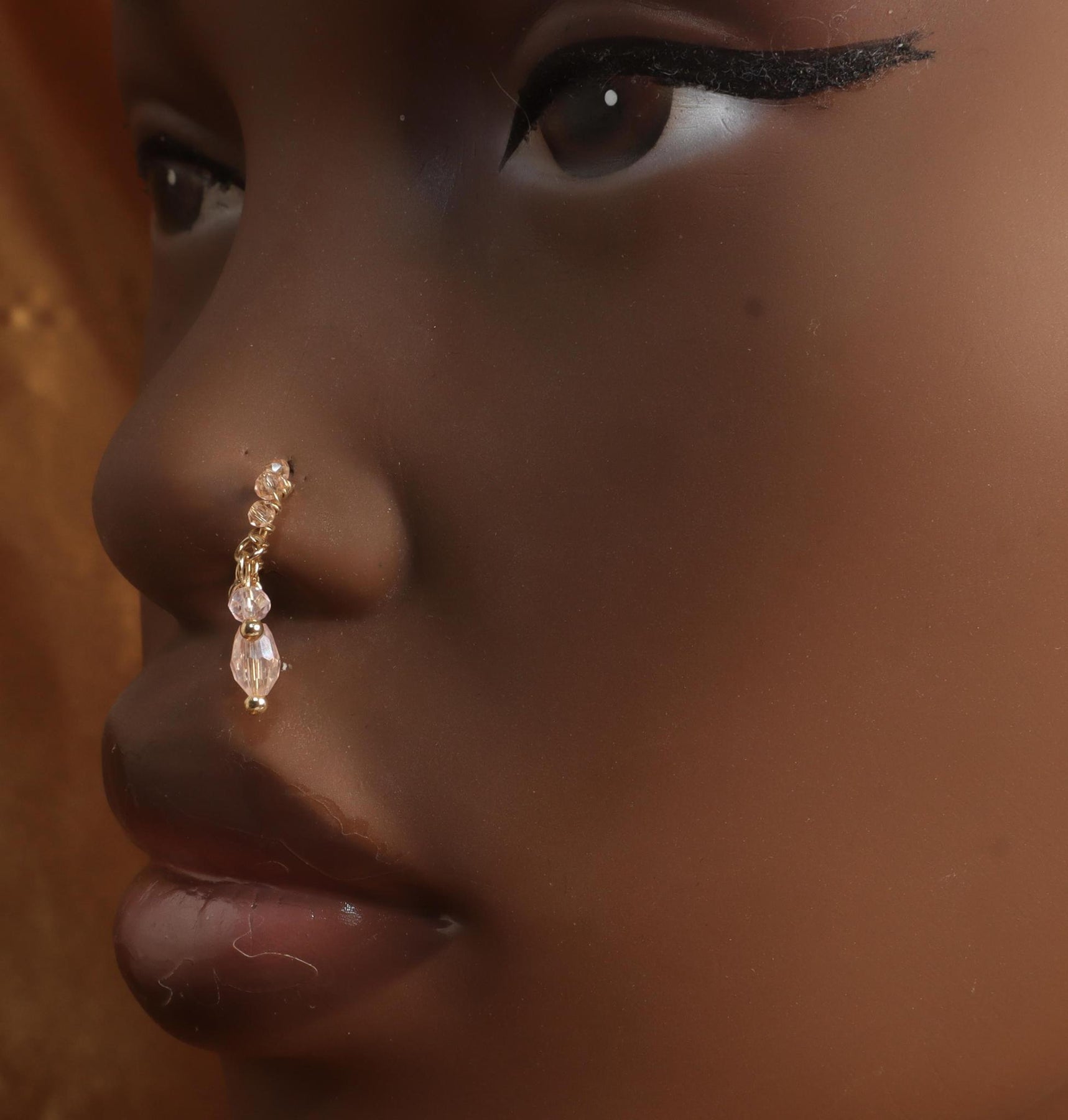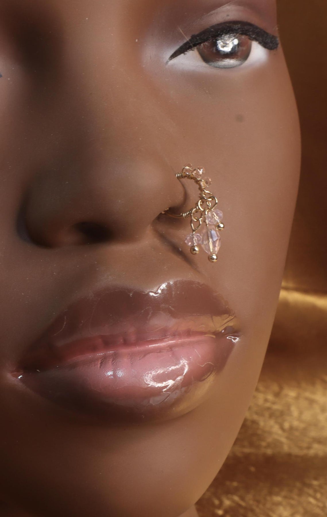 Introducing our Pink Rose Quartz Non Piercing Nose Cuff Rings, a stunning and unique jewelry piece that allows you to showcase the natural beauty of rose quartz on your nose without the need for a piercing.