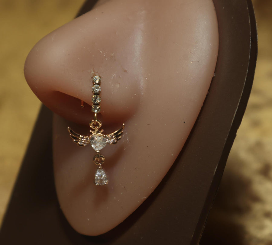 Browse our 20g Collection, showcasing thinner nose rings that offer a subtle and elegant appearance. These pieces are perfect for those who prefer a more delicate and refined look for their nose piercings. Expertly crafted, this 20G non-tarnish gold necklace showcases a beautiful angel pendant with a lucky number. Individually designed and meticulously made, this jewelry piece adds a touch of elegance to any outfit. Made to last and never lose its shine, it's a precious addition to anyone's collection.