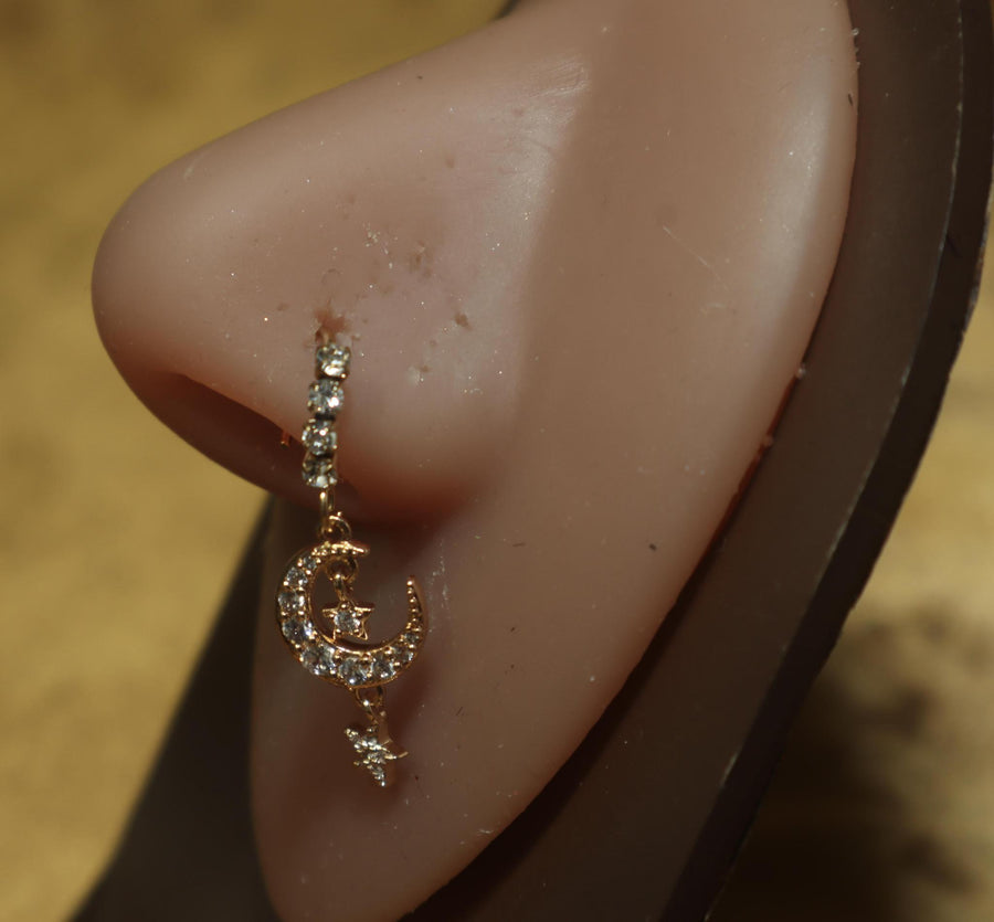 Five Petal Flower Dangle Chain Nose Stud - YoniDa'Punani