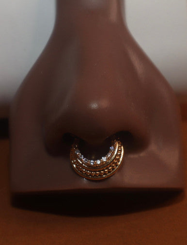 Double UP Heart Cubic Zirconia Nose Stud Piercing