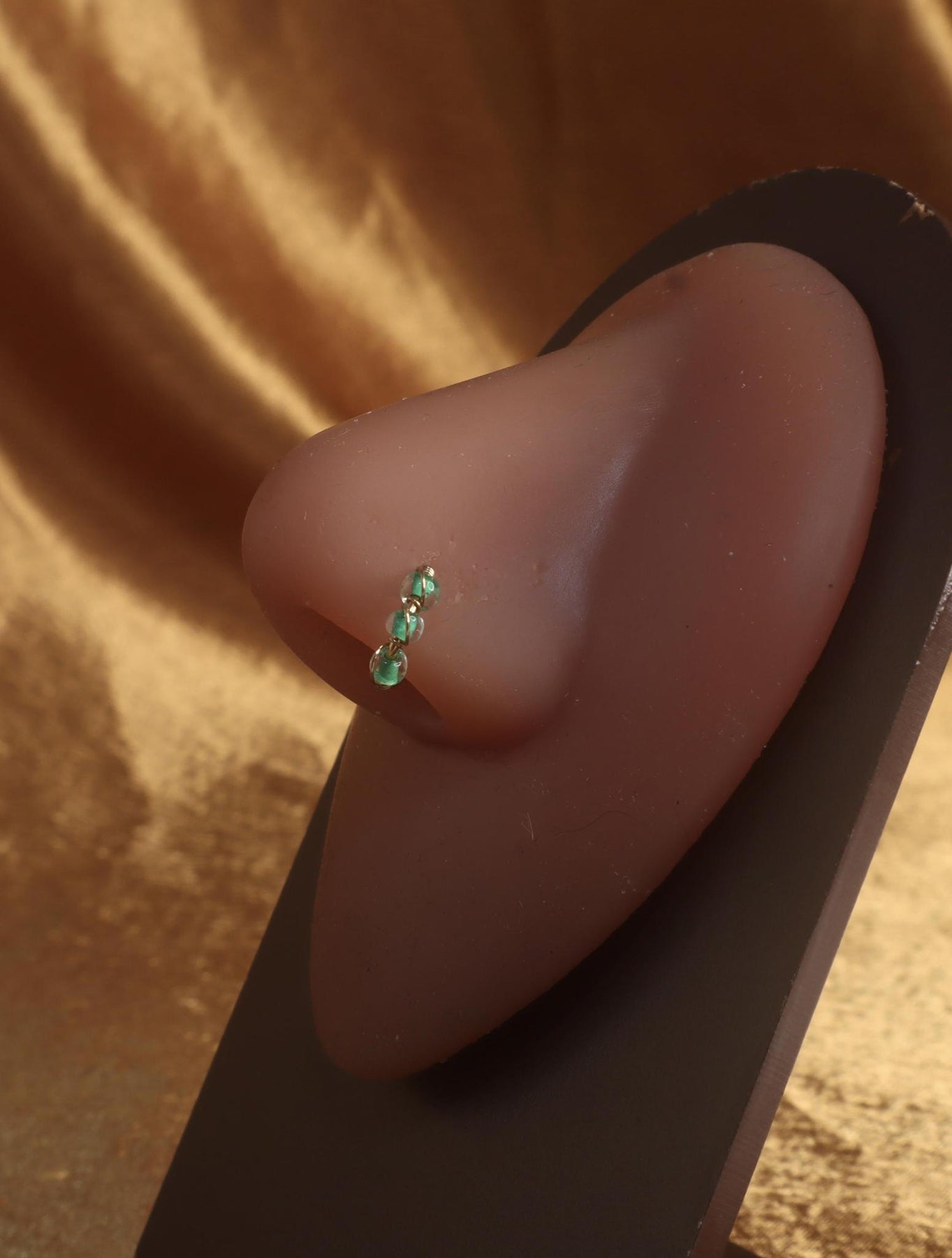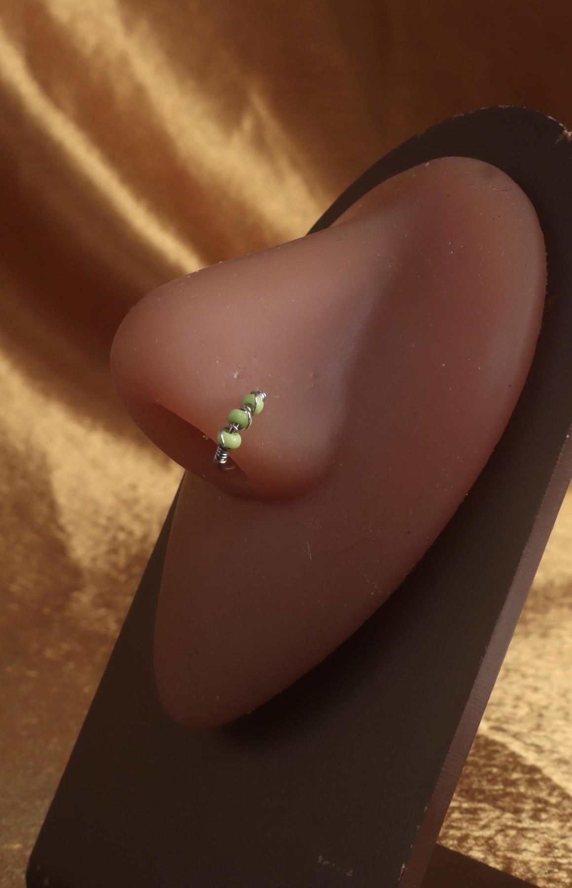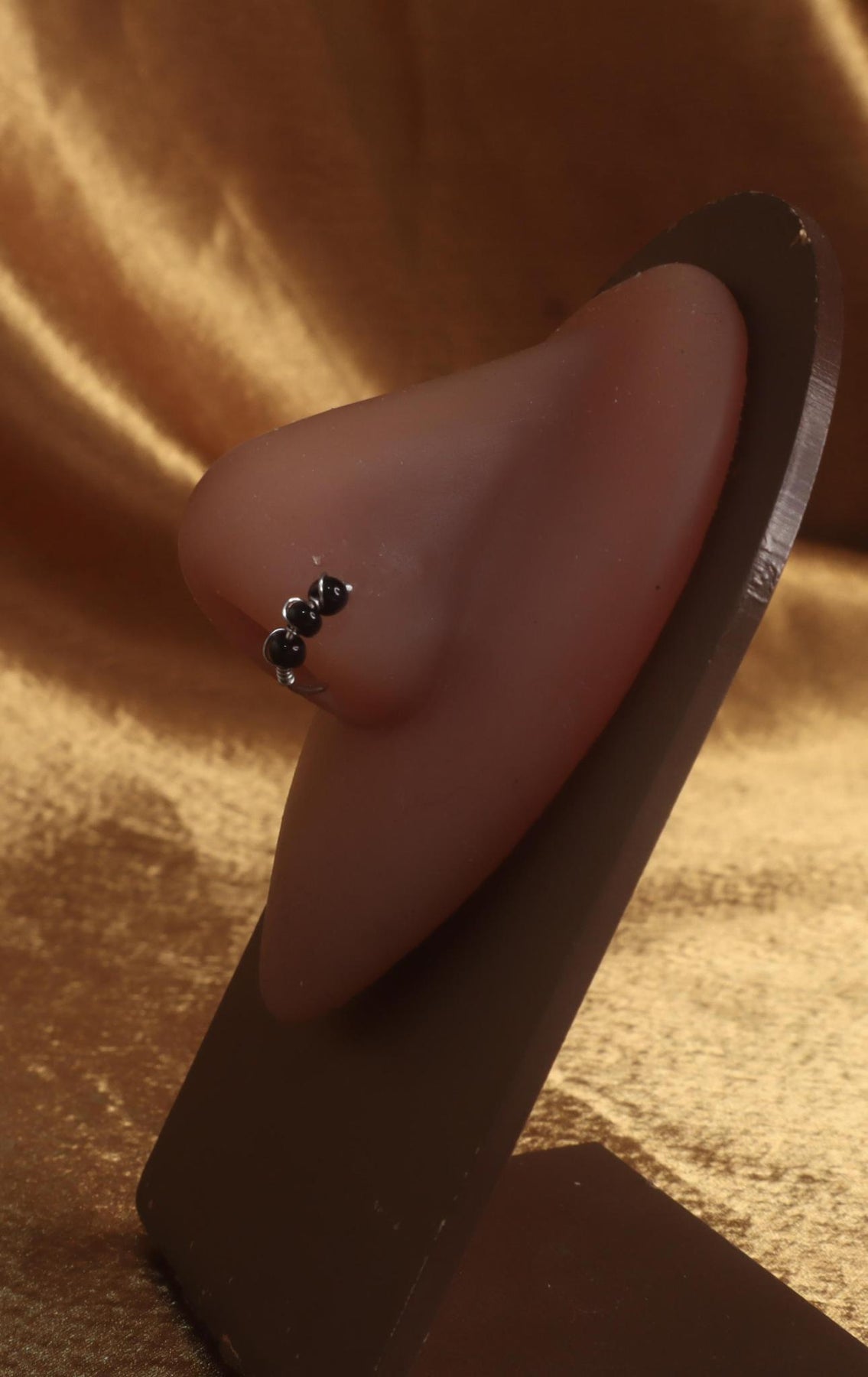 Introducing our stylish Steel Three Beads Nose Hoop Body Jewelry, a fashionable accessory that adds a touch of elegance to your nose piercing.