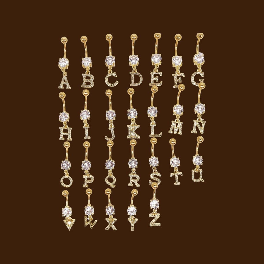 Multi Style Gold Alphabet Letter Navel Belly Bars