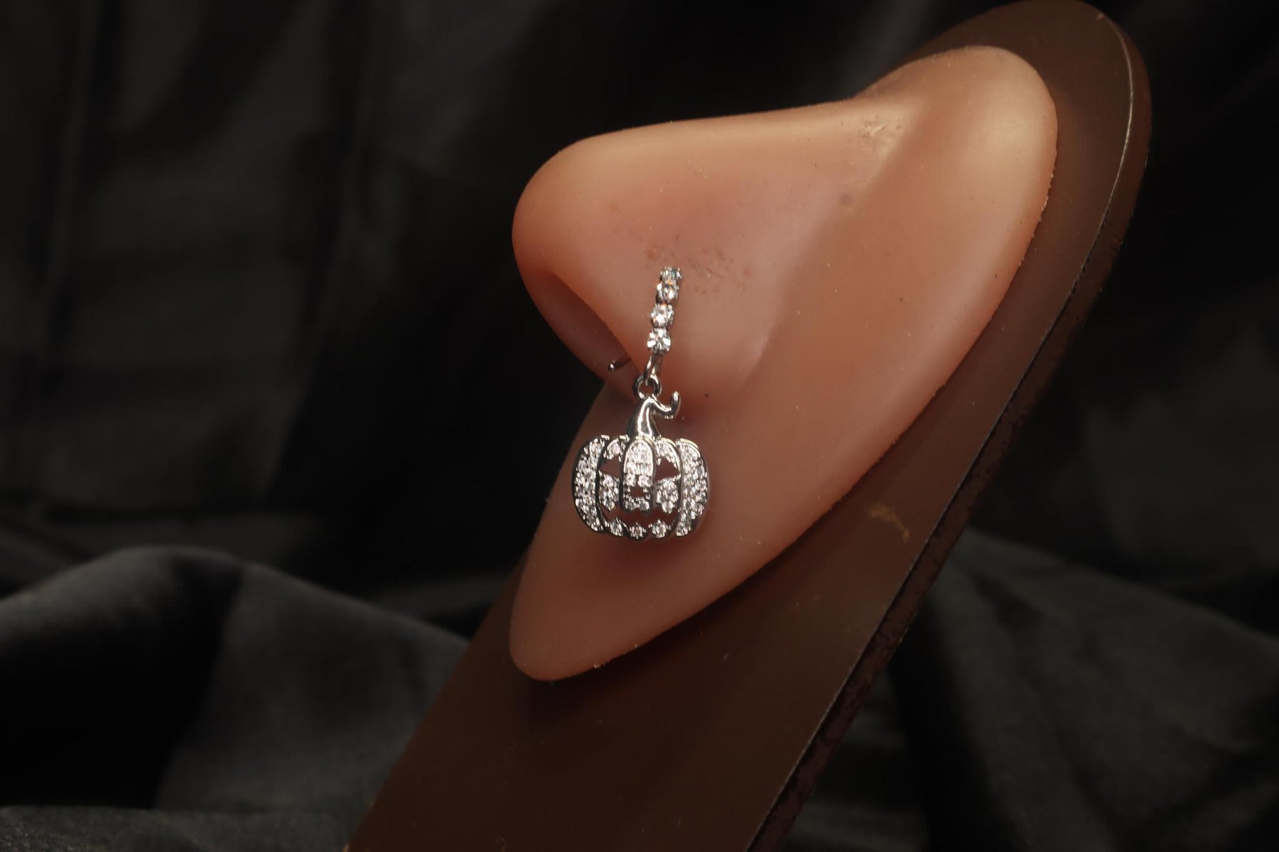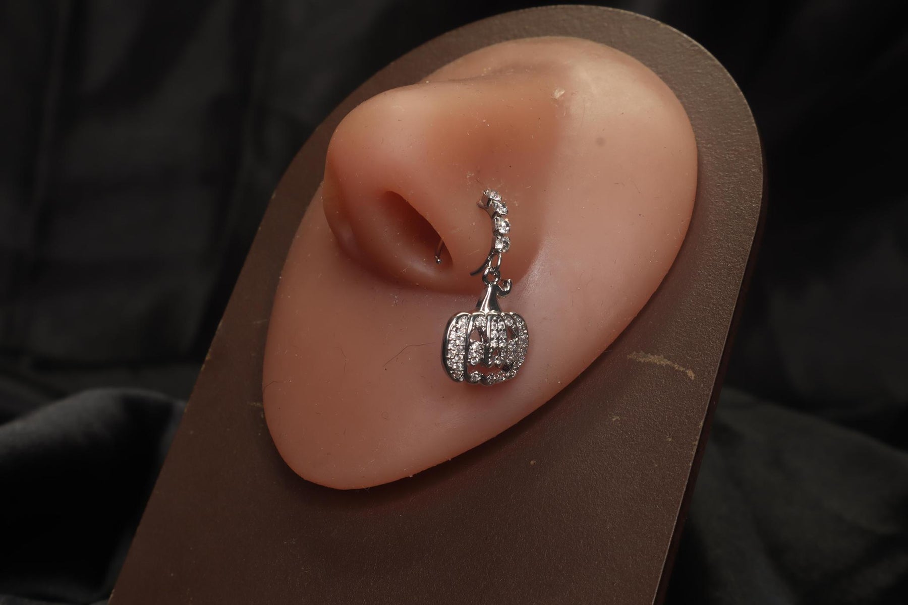 Whimsical Harvest: Embrace the spirit of the autumnal season with the Pumpkin Patch Nose Hoop. Its intricate design captures the enchanting essence of a mystical pumpkin patch, infusing your Halloween look with a touch of whimsical charm.