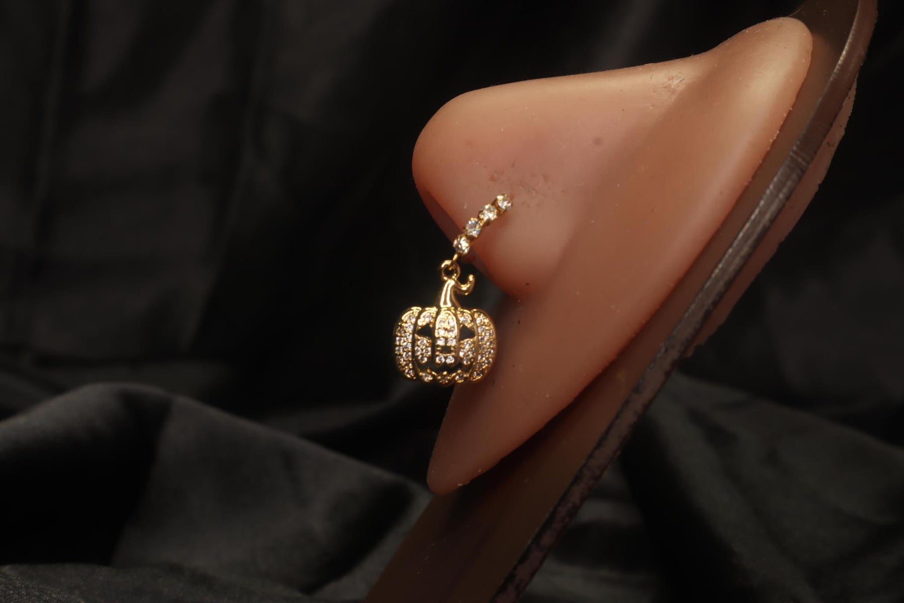 Enchanting Harvest Magic: Add a touch of whimsy and seasonal allure to your Halloween wardrobe with the Pumpkin Patch Nose Hoop. Let its festive charm and intricate detailing be the highlight of your Halloween ensemble, captivating all with its enchanting harvest magic.