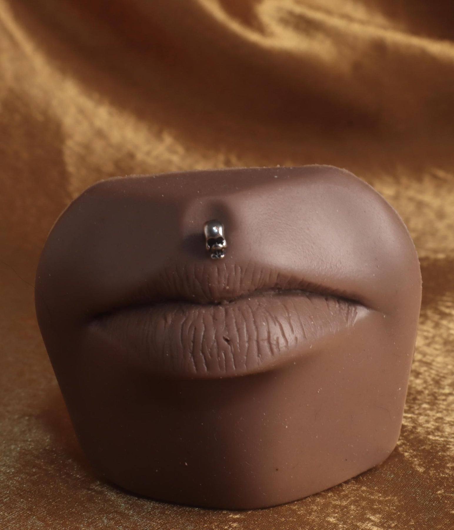 Introducing our Tiny Dainty Skull Head Labret Lip Piercing, a subtle yet edgy piece of body jewelry that adds a touch of uniqueness to your lip piercing.