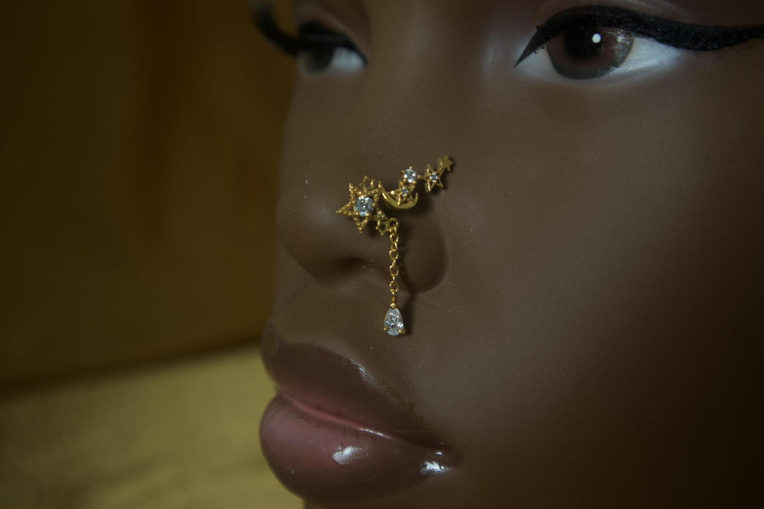 ✔DANGLING CHAIN: The unique design and dangling chain will give your nose a beautiful look, and style. You can even wear it with other jewelry for a perfect look.