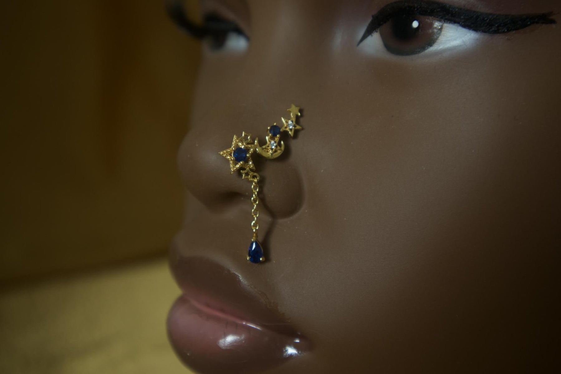 The star glazer nose stud jewelry will give you a dazzling touch whenever you wear it on your nose. The beautiful stars and unique dangle design will give your nose a prominent look and take your personality to the next level.