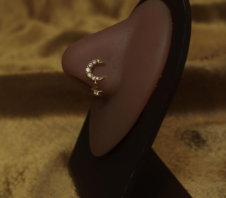 Half Moon Celestial Dangle Star Nose Stud