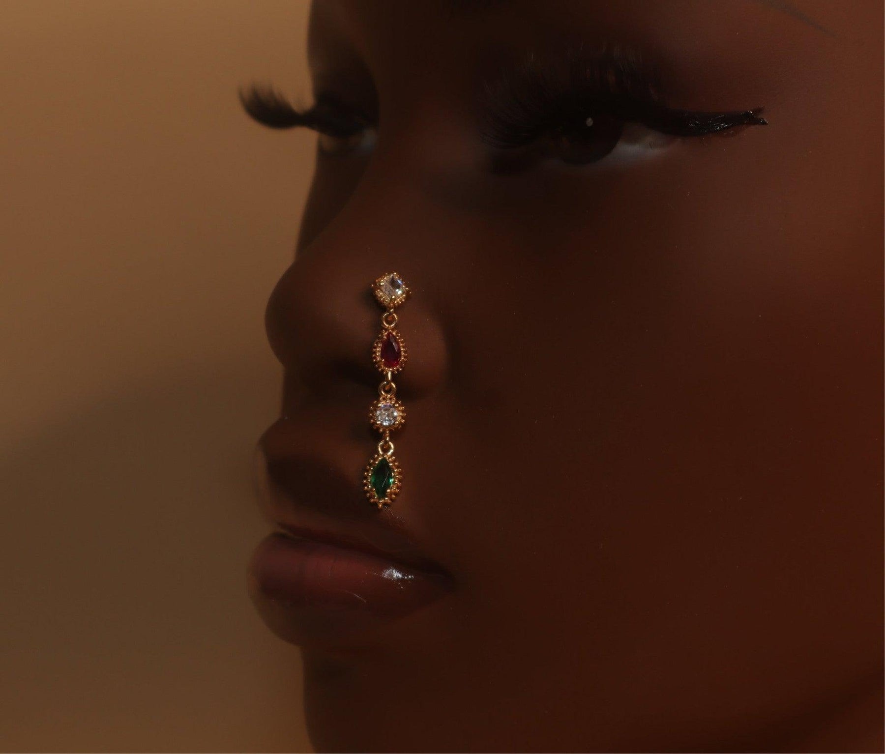 Let’s be a trendsetter with this dangle gem nose stud. If you are looking for a piece of jewelry that beautifies your overall personality, then this nose stud jewelry would be the ideal choice.