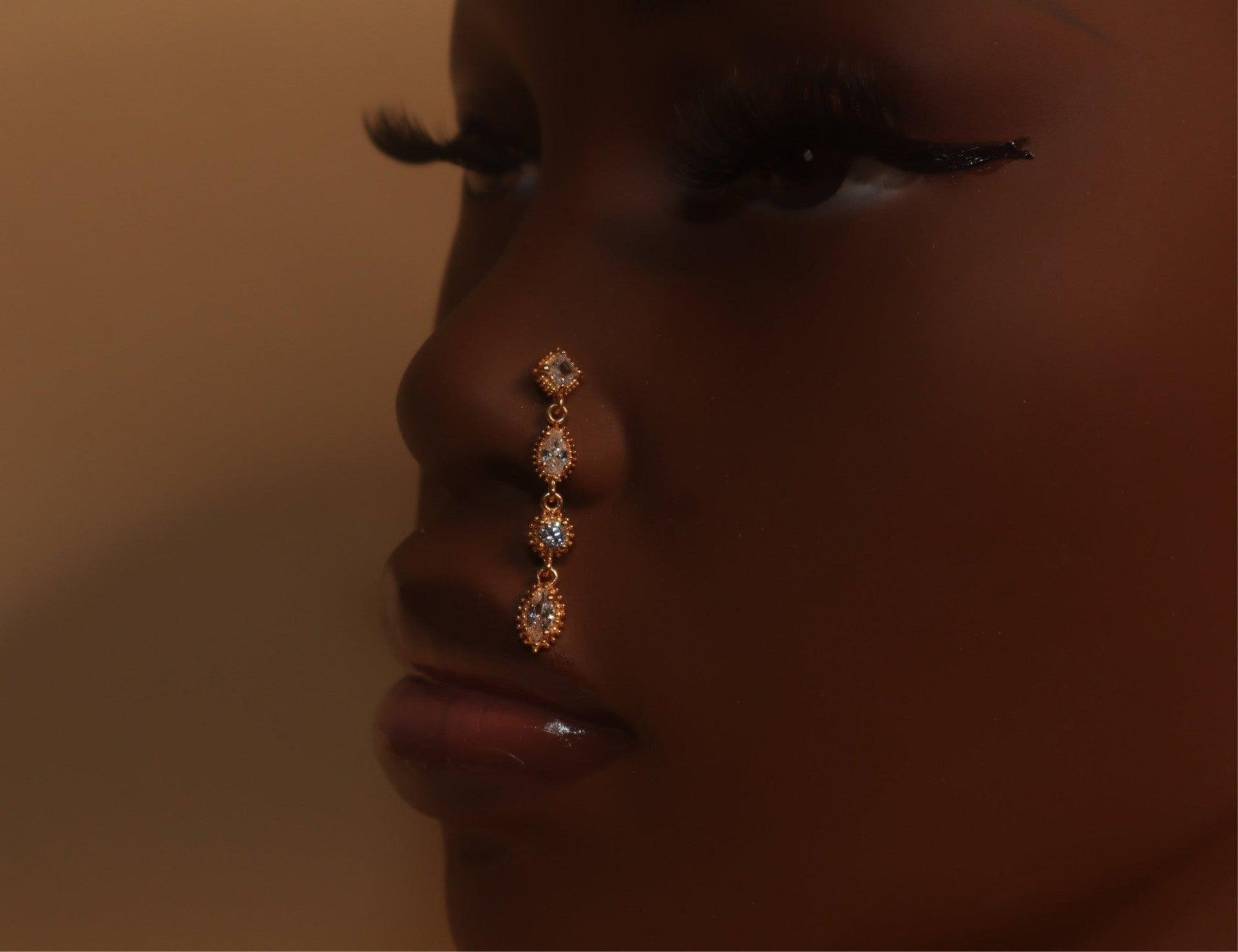 ✔DANGLE DESIGN: This jewelry features a beautiful dangle gem design that will give your nose a charm and dazzling feel. It will accentuate your nose charisma.