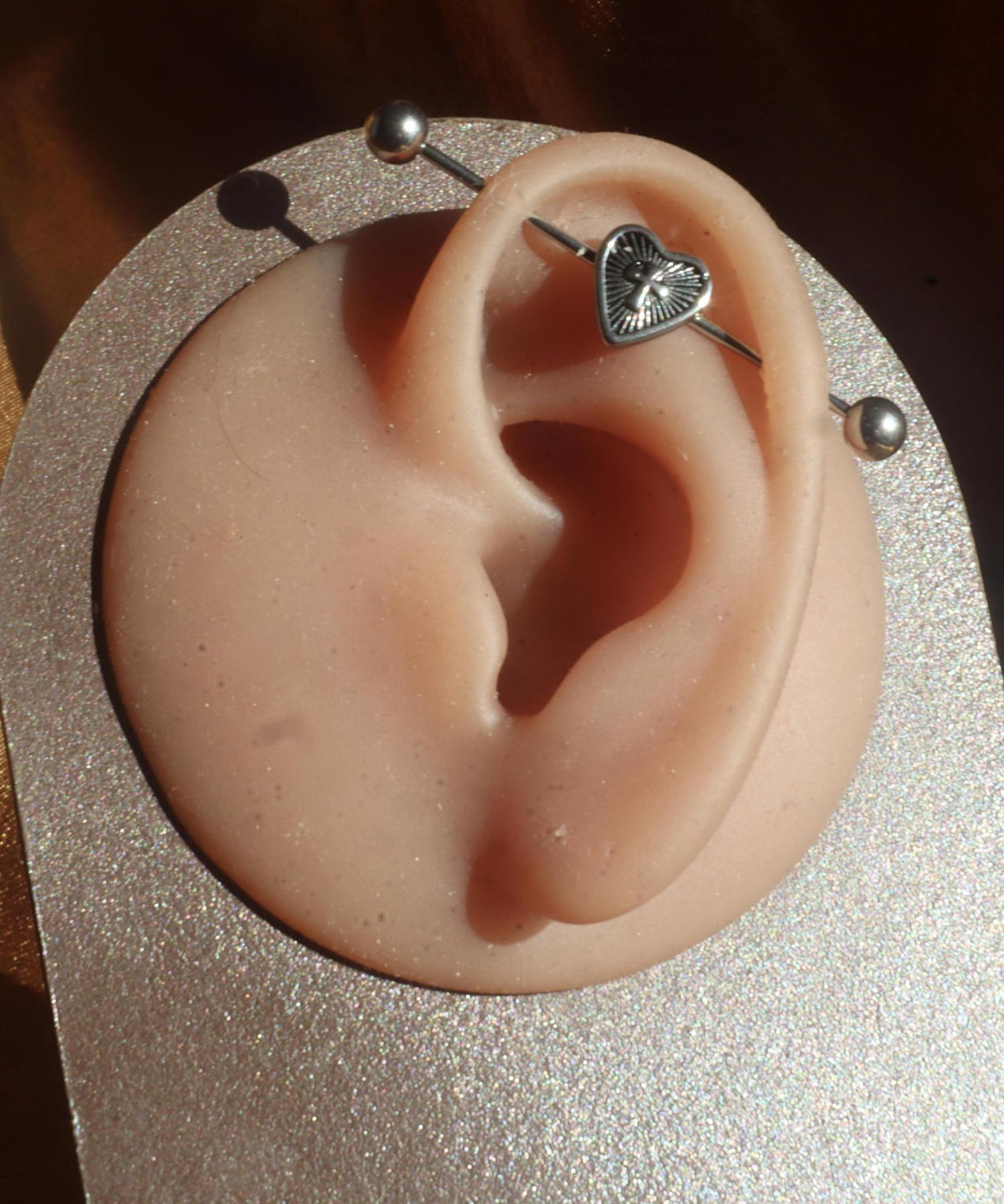 Introducing our captivating Steel Cross Heart Industrial Barbell Body Piercing Jewelry, a symbolic and stylish accessory that combines the elegance of a heart with the spiritual significance of a cross.